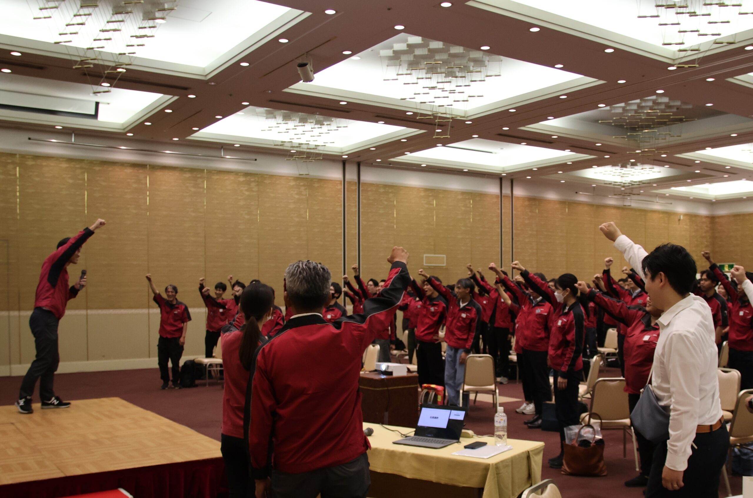 総決起集会では、上期の業績発表、下期に向けての各部門の取組内容を発表しました。