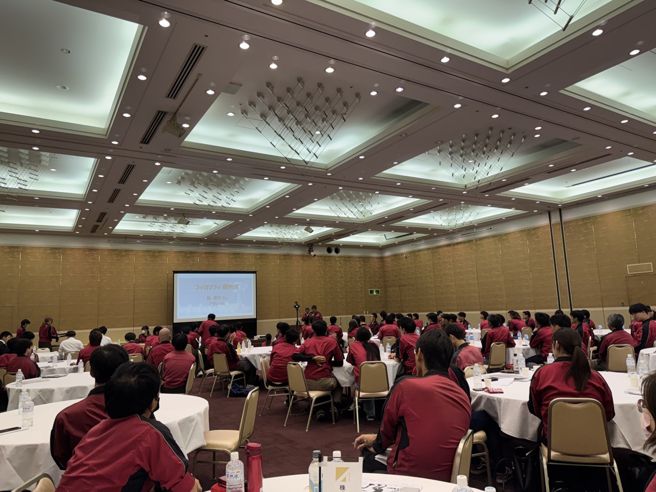 部門別で集まりながら昼食も食べ、各テーブルから笑い声の絶えない昼食会でした。