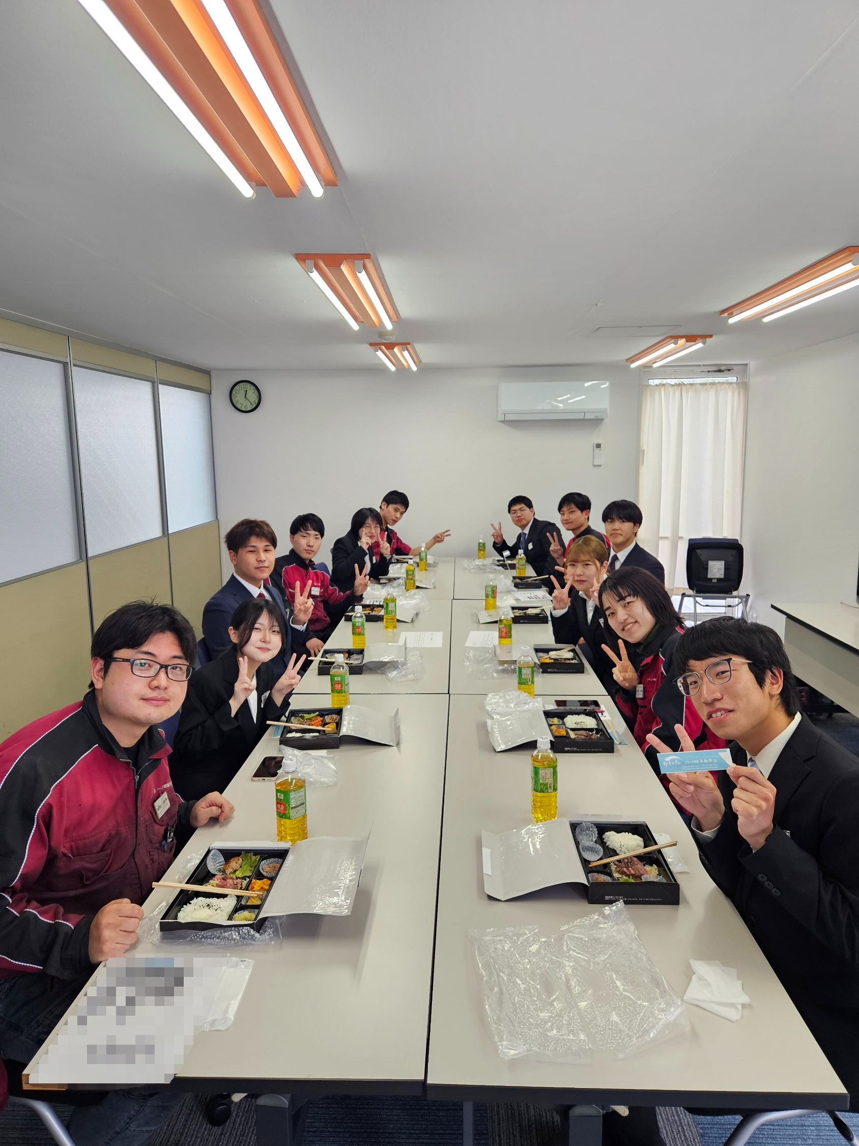入社式の後は、先輩社員との親睦を兼ねた昼食会を行いました。